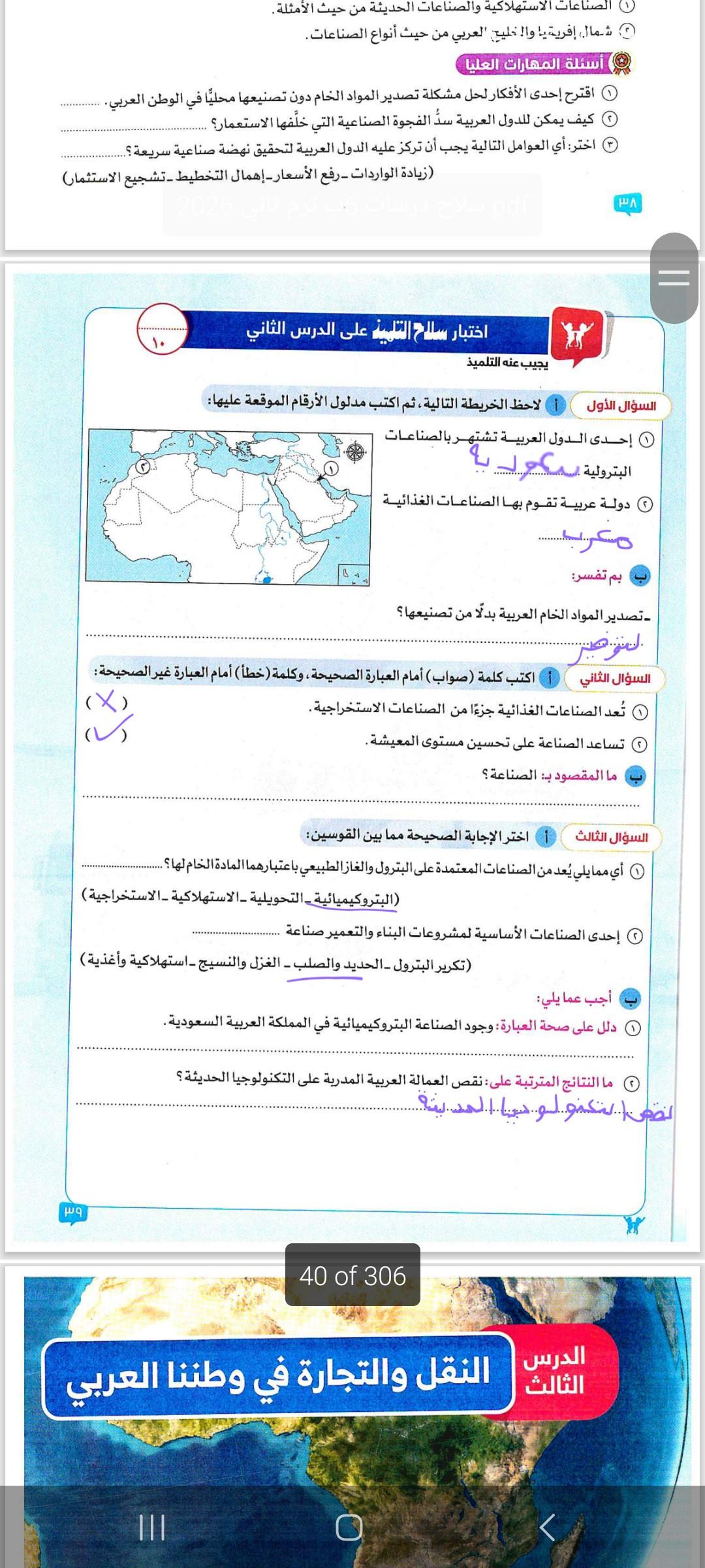 اخدنا اليوم الجزء الاول من الدرس الثالث النقل والتجاره في الوطن العربي